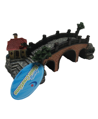 Puente pequeño con casa. 10 cm largo x 4 cm alto